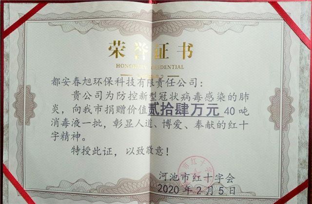 ▲捐贈獲得河池市紅十字會頒發(fā)的榮譽(yù)證書