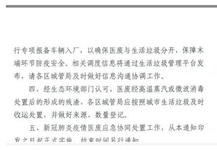 最為醒目的一點,當(dāng)區(qū)域內(nèi)現(xiàn)有處置能力無法滿足肺炎疫情醫(yī)療廢物應(yīng)急處置需要時,應(yīng)立即啟動應(yīng)急預(yù)案,可以選擇可移動式醫(yī)療廢物處置設(shè)施、危險廢物焚燒設(shè)施、生活垃圾焚燒設(shè)施、工業(yè)爐窯等設(shè)施應(yīng)急處置肺炎疫情醫(yī)療廢物,實行定點管理。