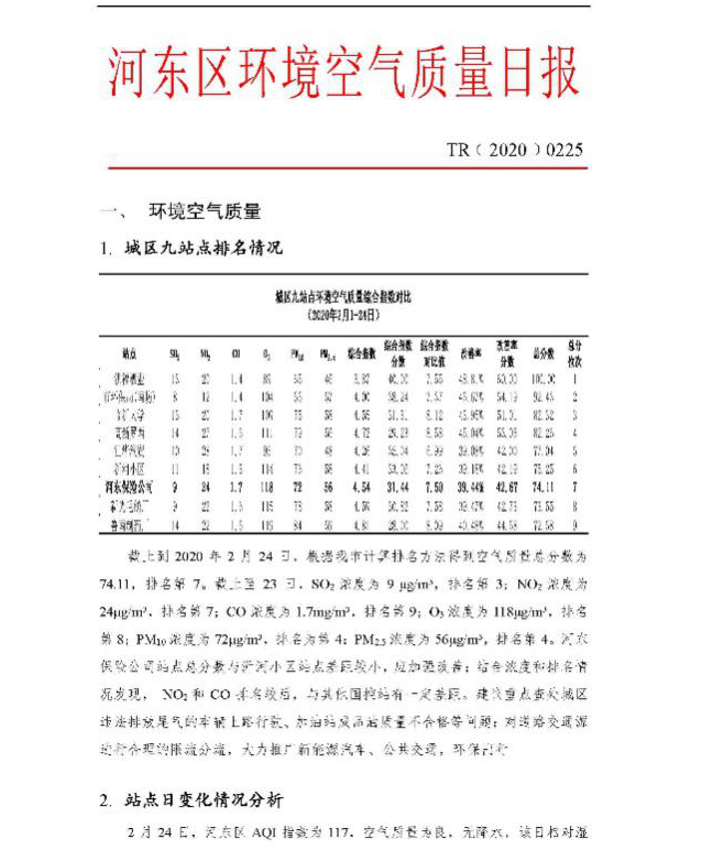 在環(huán)境管理技術(shù)指導(dǎo)過程中,公司堅持駐場人員指導(dǎo)服務(wù)+總部大數(shù)據(jù)分析支撐的雙管齊下服務(wù)模式,每日為臨沂市河?xùn)|區(qū)提供環(huán)境空氣質(zhì)量日報,提供針對污染源排查的數(shù)據(jù)分析報告,如分析2020年春節(jié)前后機(jī)動車變化情況對國控站點的數(shù)據(jù)影響程度的“春節(jié)效應(yīng)”、“祭祀效應(yīng)”等。