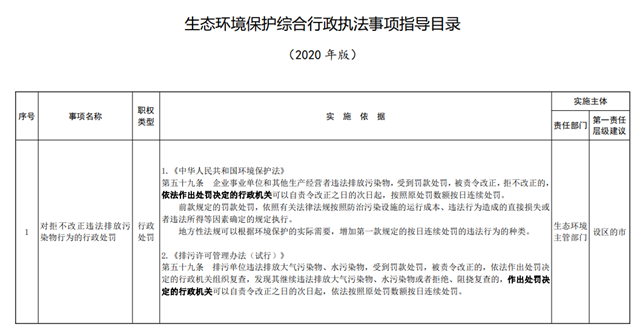 詳情點(diǎn)擊:《生態(tài)環(huán)境保護(hù)綜合行政執(zhí)法事項(xiàng)指導(dǎo)目錄(2020年版)》