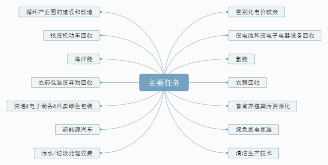 綠色生產(chǎn)和綠色消費(fèi)囊括了社會(huì)生活的方方面面活動(dòng),主要任務(wù)進(jìn)一步細(xì)分了這兩大板塊的內(nèi)容。其中,要圈起來(lái)的點(diǎn)包括但不僅限于