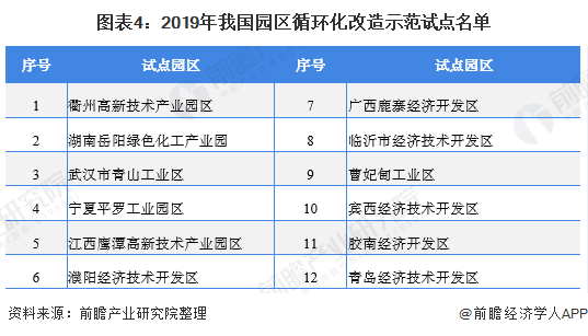 根據(jù)2019年4月17日國(guó)家發(fā)改委與財(cái)政部聯(lián)合發(fā)布的《關(guān)于2019年園區(qū)循環(huán)化改造示范試點(diǎn)和“城市礦產(chǎn)”示范基地驗(yàn)收結(jié)果的公示》,現(xiàn)階段,共有12個(gè)園區(qū)循環(huán)化改造示范試點(diǎn)和4個(gè)“城市礦產(chǎn)”示范基地通過(guò)驗(yàn)收。