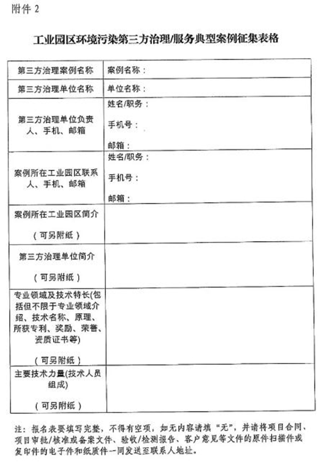 附件2:工業(yè)園區(qū)環(huán)境污染第三方治理/服務(wù)典型案例征集表格
