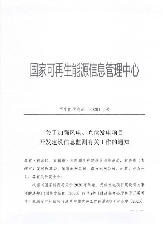 原標題:關(guān)于加強風(fēng)電、光伏項目開發(fā)建設(shè)信息監(jiān)測有關(guān)工作的通知