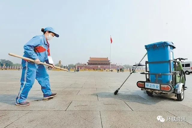 “您已進(jìn)入廣場(chǎng)地區(qū),請(qǐng)將手里的垃圾按分類(lèi)要求投入相應(yīng)垃圾箱,共同愛(ài)護(hù)廣場(chǎng)環(huán)境。”今天一早,走進(jìn)天安門(mén)廣場(chǎng)的游客都會(huì)聽(tīng)到這樣一段提示語(yǔ),提醒大家注意垃圾分類(lèi)。幾臺(tái)電動(dòng)保潔清運(yùn)車(chē)在廣場(chǎng)上有序穿梭,車(chē)后掛著藍(lán)色或銀色的分類(lèi)垃圾桶。
