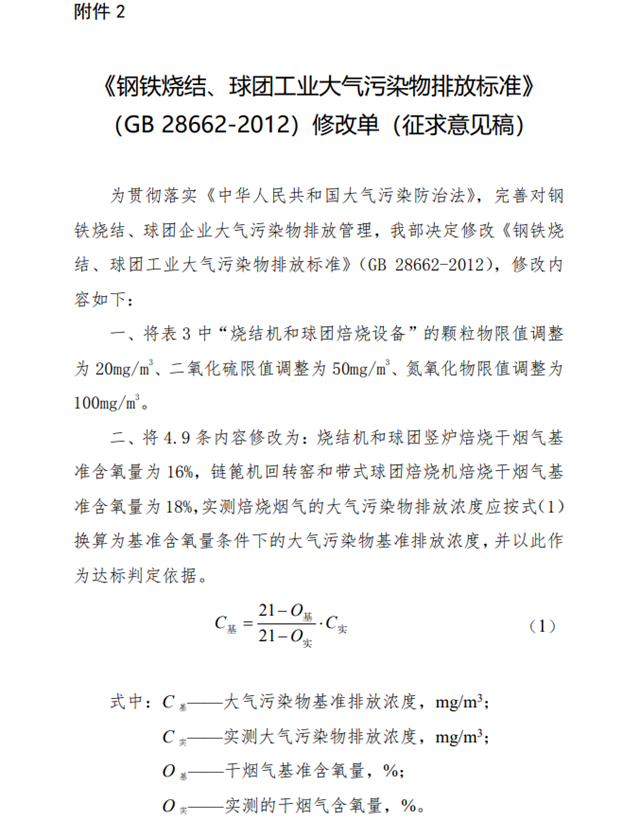 2.《鋼鐵燒結(jié)、球團工業(yè)大氣污染物排放標準》(GB 28662-2012)修改單(征求意見稿)