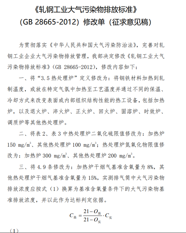 4.《軋鋼工業(yè)大氣污染物排放標準》(GB 28665-2012)修改單(征求意見稿)