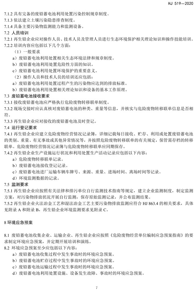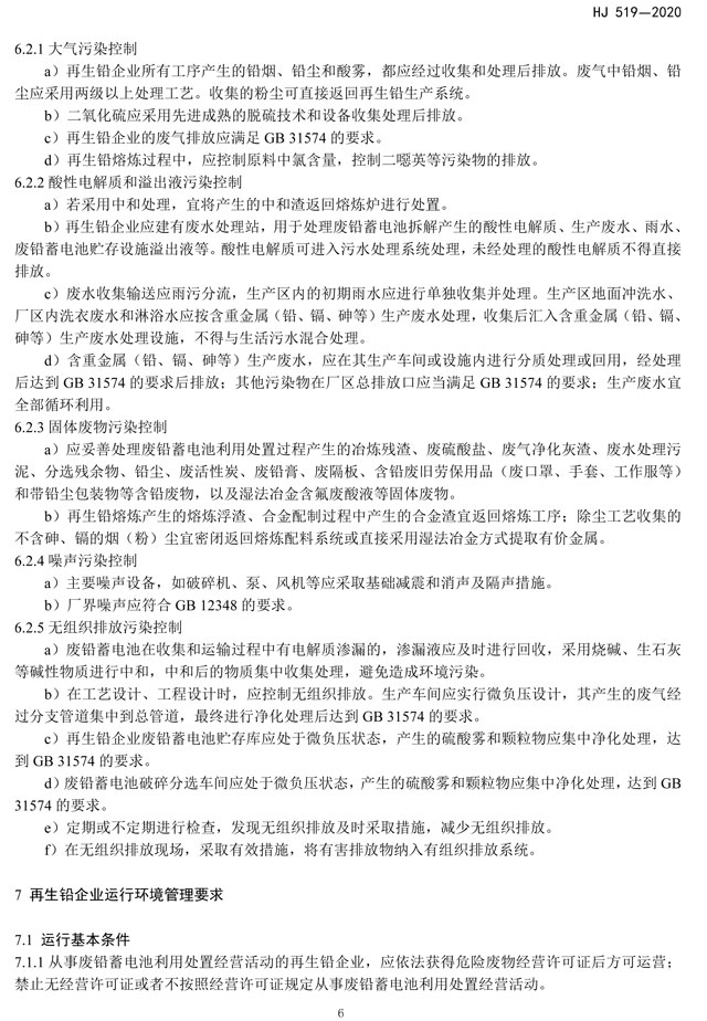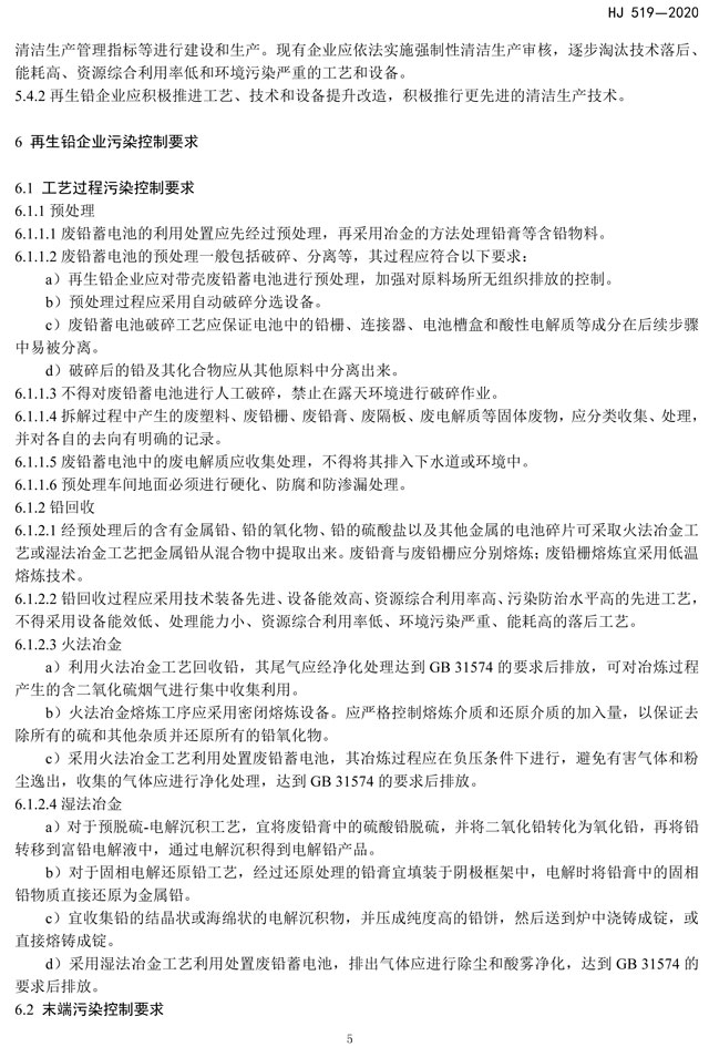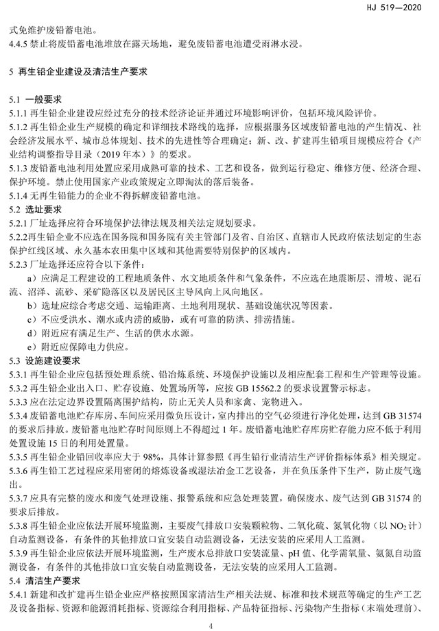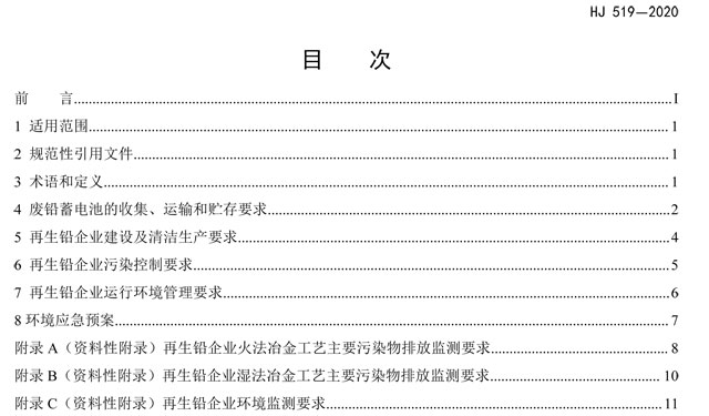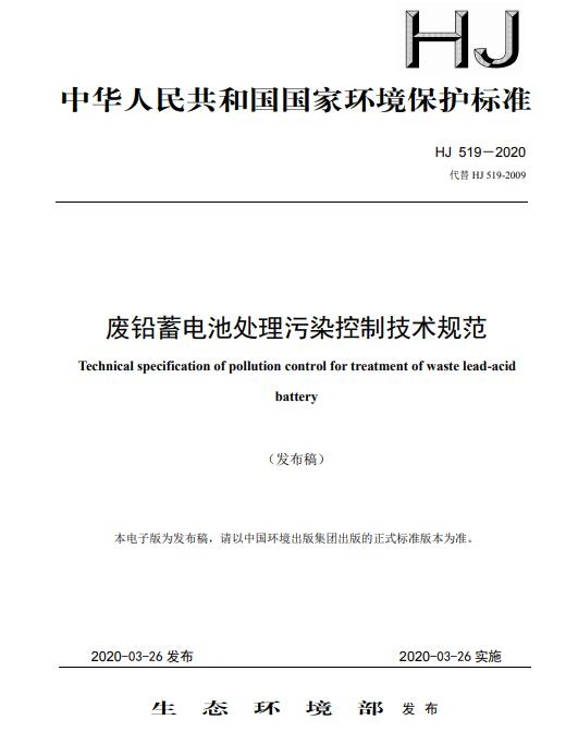 《廢鉛蓄電池處理污染控制技術(shù)規(guī)范》(HJ 519-2020)