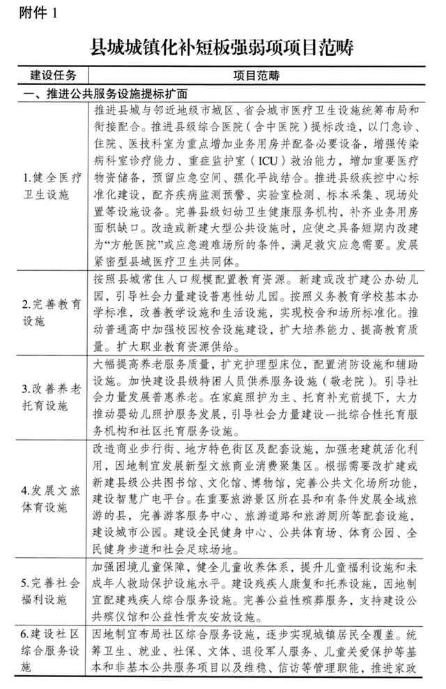 附件:1.縣城城鎮(zhèn)化補(bǔ)短板強(qiáng)弱項(xiàng)項(xiàng)目范疇