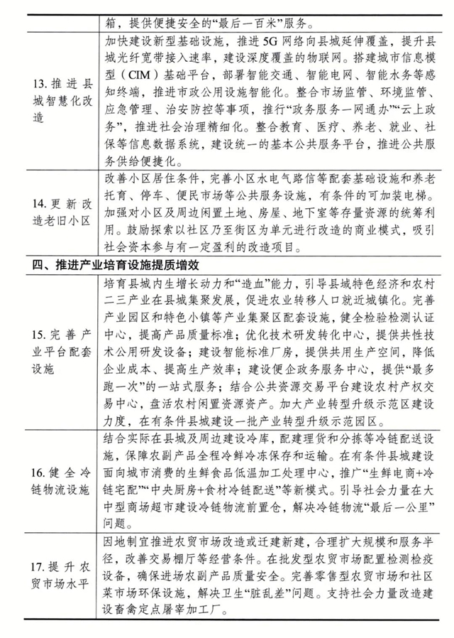 日前,國(guó)家發(fā)改委印發(fā)關(guān)于加快開展縣城城鎮(zhèn)化補(bǔ)短板強(qiáng)弱項(xiàng)工作的通知,通知要求聚力推進(jìn)17項(xiàng)建設(shè)任務(wù),抓緊補(bǔ)上疫情暴露出的縣城城鎮(zhèn)化短板弱項(xiàng),大力提升縣城公共設(shè)施和服務(wù)能力,促進(jìn)公共服務(wù)設(shè)施提標(biāo)擴(kuò)面、環(huán)境衛(wèi)生設(shè)施提級(jí)擴(kuò)能、市政公用設(shè)施提擋升級(jí)、產(chǎn)業(yè)培育設(shè)施提質(zhì)增效等,為堅(jiān)定實(shí)施擴(kuò)大內(nèi)需戰(zhàn)略和新型城鎮(zhèn)化戰(zhàn)略提供重要支撐。