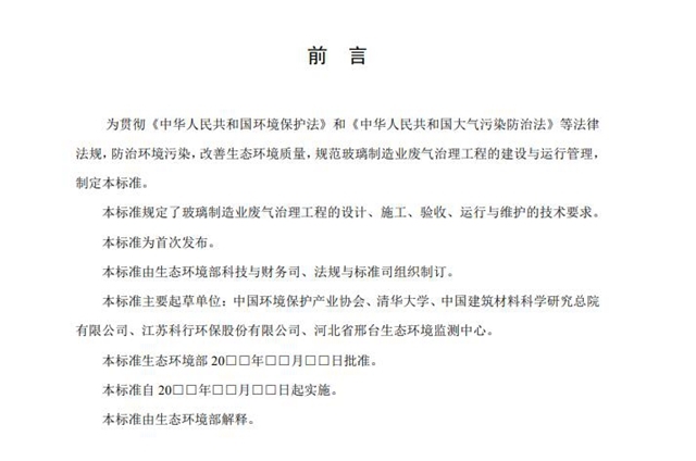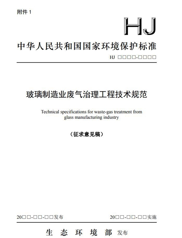 為貫徹《中華人民共和國環(huán)境保護法》,保護環(huán)境,防治環(huán)境污染,我部組織開展了國家環(huán)境保護標準《玻璃制造業(yè)廢氣治理工程技術規(guī)范》的編制工作。