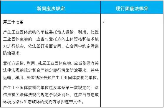 4.新增了委托他人運輸、利用、處置工業(yè)固廢的,應(yīng)對受托方進行審查,否則承擔連帶責任的要求