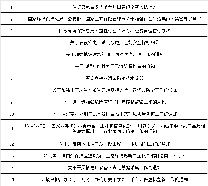 擬廢止的規(guī)章:汽車排氣污染監(jiān)督管理辦法(〔90〕環(huán)管字第 359號(hào));建設(shè)項(xiàng)目竣工環(huán)境保護(hù)驗(yàn)收管理辦法(原國(guó)家環(huán)境保護(hù)總局令第 13 號(hào))