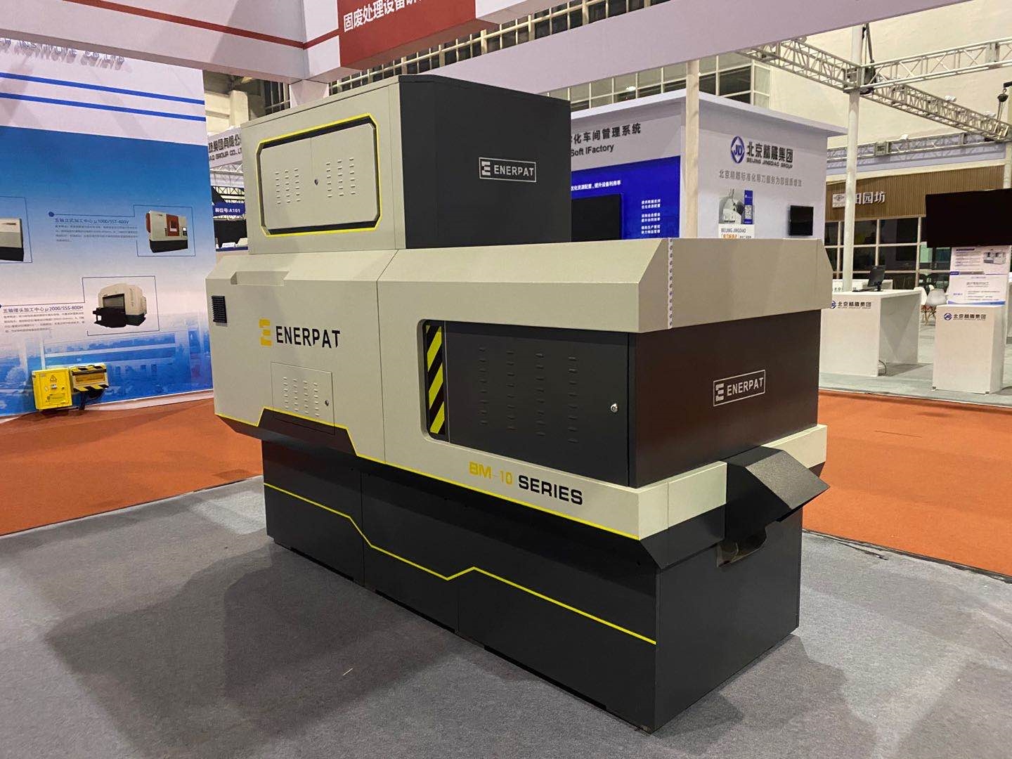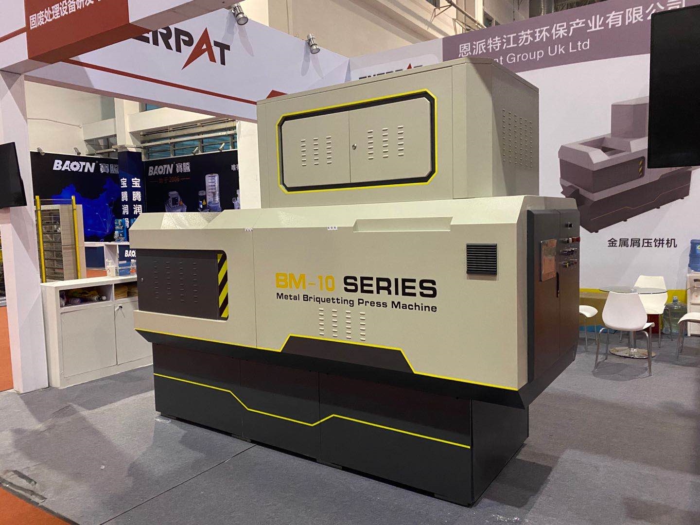 作為此次參展產(chǎn)品的重頭戲,BM系列全自動(dòng)金屬屑?jí)猴灆C(jī)可謂“內(nèi)外兼修”,不僅擁有美觀、人性化的設(shè)計(jì),而且設(shè)備升級(jí)了智能化功能、新穎的雙絞龍送料結(jié)構(gòu)、獨(dú)特的壓縮裝置、便捷的維護(hù)設(shè)計(jì),保障了壓餅機(jī)的大壓縮比、高壓縮效率、較好的物料壓縮效果,恩派特全自動(dòng)金屬屑?jí)猴灆C(jī)可以廣泛用于鐵屑、銅屑、鋼屑、鋁屑、合金鋼屑等壓餅處置,成功解決了車間金屬切屑難收集,切屑液滴漏的難題!展會(huì)現(xiàn)場,這臺(tái)金屬屑?jí)猴灆C(jī)經(jīng)常被現(xiàn)場觀眾圍在中間,客戶圍繞設(shè)備的功能、質(zhì)量進(jìn)行溝通交流。
