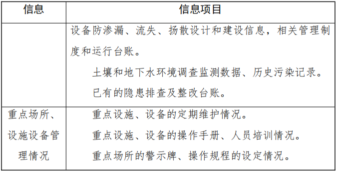 (一)確定排查范圍:通過資料收集、人員訪談,確定重點(diǎn)場所和重點(diǎn)設(shè)施設(shè)備,即可能或易發(fā)生有毒有害物質(zhì)滲漏、流失、揚(yáng)散的場所和設(shè)施設(shè)備。