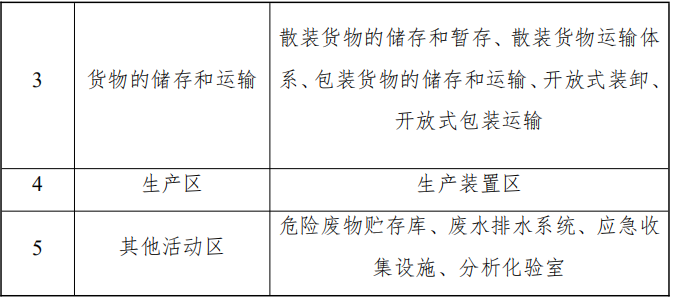 可參考表2,識別涉及有毒有害物質(zhì)的重點(diǎn)場所或者重點(diǎn)設(shè)施設(shè)備,編制企業(yè)土壤污染隱患重點(diǎn)場所、重點(diǎn)設(shè)施設(shè)備清單。若鄰近的多個重點(diǎn)設(shè)施設(shè)備防滲漏、流失、揚(yáng)散的要求相同,可合并為一個重點(diǎn)場所。