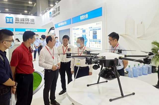 盈峰環(huán)境執(zhí)行副總裁蘭東洋向廣東省生態(tài)環(huán)境廳副廳長(zhǎng)陳金鑾詳細(xì)介紹無(wú)人機(jī)環(huán)境監(jiān)測(cè)系統(tǒng)
