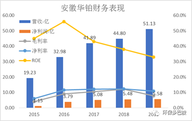 財(cái)務(wù)表現(xiàn):2019 年華鉑科技再生鉛銷量 33.19 萬噸,營收51.13 億元,同比增長 14%,凈利潤 5.58 億元。待二期全部達(dá)產(chǎn)后,按照廢舊電瓶 70%的出鉛率、再生鉛1.5萬元/噸計(jì)算,公司營收將達(dá)到126億元。