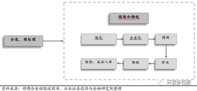 順博鋁合金2003 年成立于重慶合川,主營再生鋁合金錠,在重慶、廣東清遠(yuǎn)、江蘇溧陽擁有生產(chǎn)基地,2019年鋁合金錠產(chǎn)能達(dá) 40.27萬噸,2020年8月在深交所中小板上市,當(dāng)前市值55億元。公司是國家標(biāo)準(zhǔn)《再生鑄造鋁合金原料》(GB/T 38472-2019)的起草單位,主要工藝包括分選、預(yù)處理和熔煉、鑄錠等。
