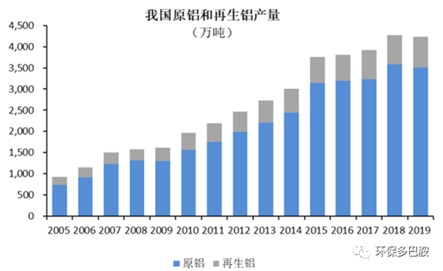 2019年國內(nèi)再生鋁產(chǎn)量達(dá)到725萬噸,按照萬噸再生鋁產(chǎn)值1.25億測算,19年再生鋁市場即達(dá)到900億。相比美國再生鋁產(chǎn)量占總產(chǎn)量的83%,我國目前再生鋁產(chǎn)量僅占總量的17%左右,未來還有很大的市場空間。
