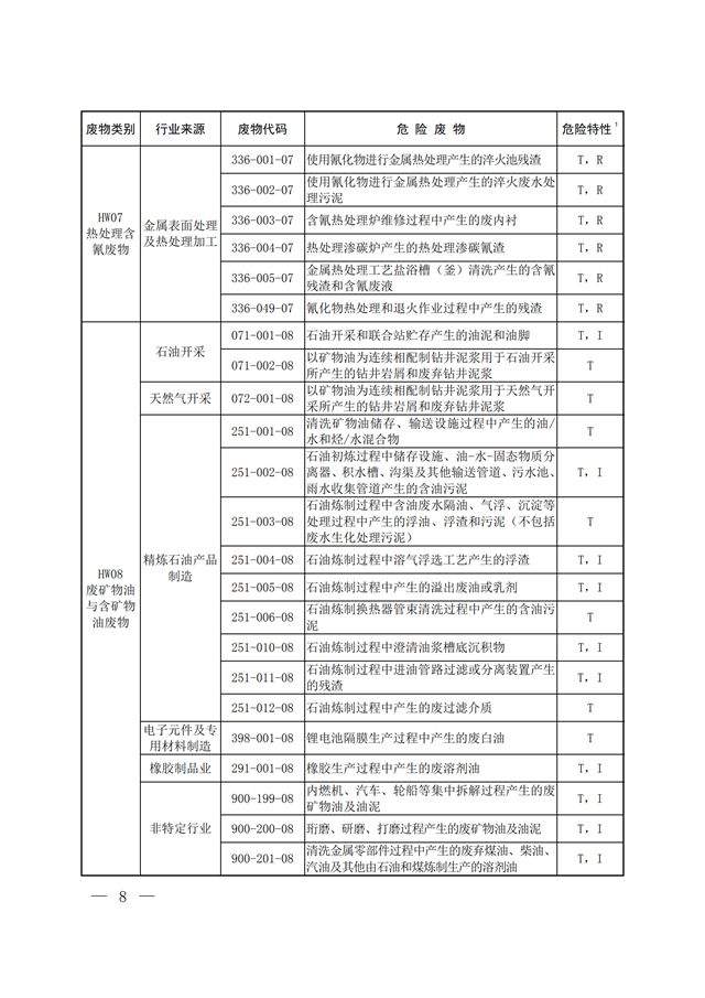 第八條 本名錄自 2021 年 1 月 1 日起施行。原環(huán)境保護(hù)部、國(guó) 家發(fā)展和改革委員會(huì)、公安部發(fā)布的《國(guó)家危險(xiǎn)廢物名錄》(環(huán)境 保護(hù)部令第 39 號(hào))同時(shí)廢止。