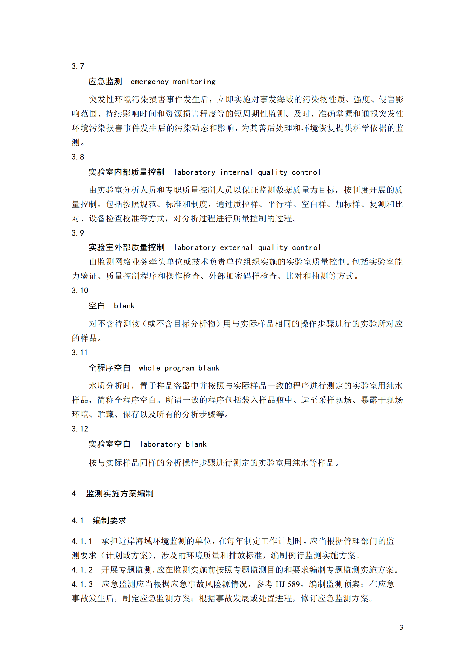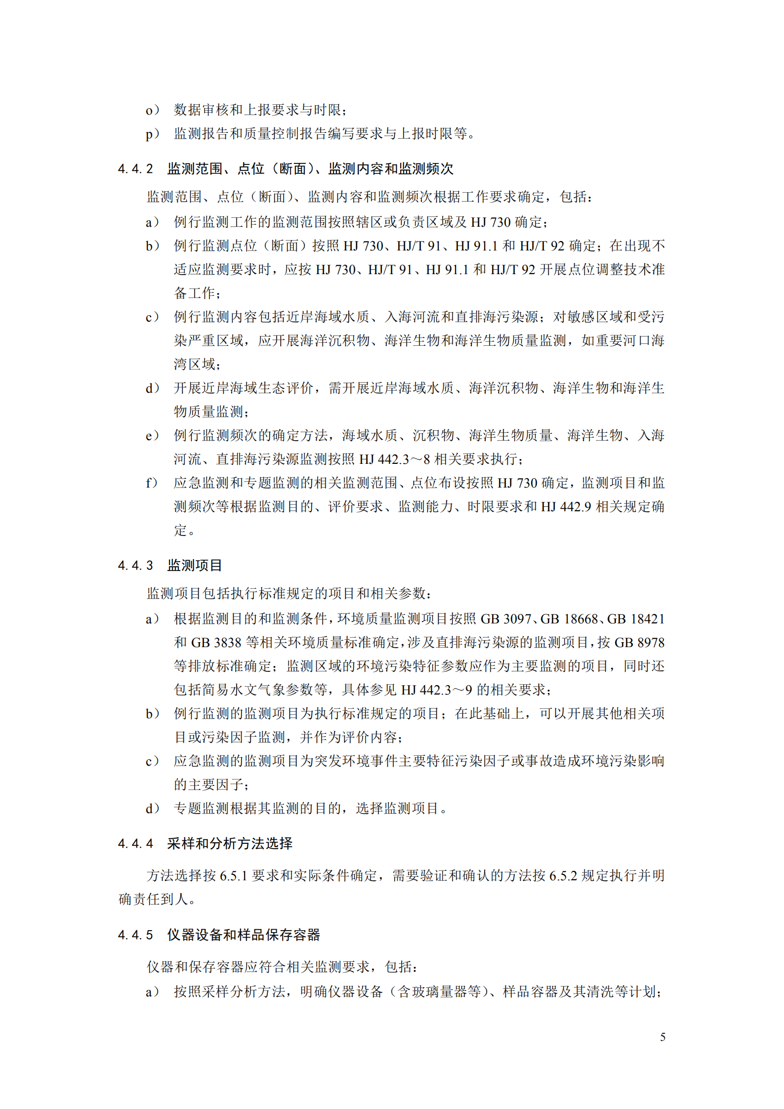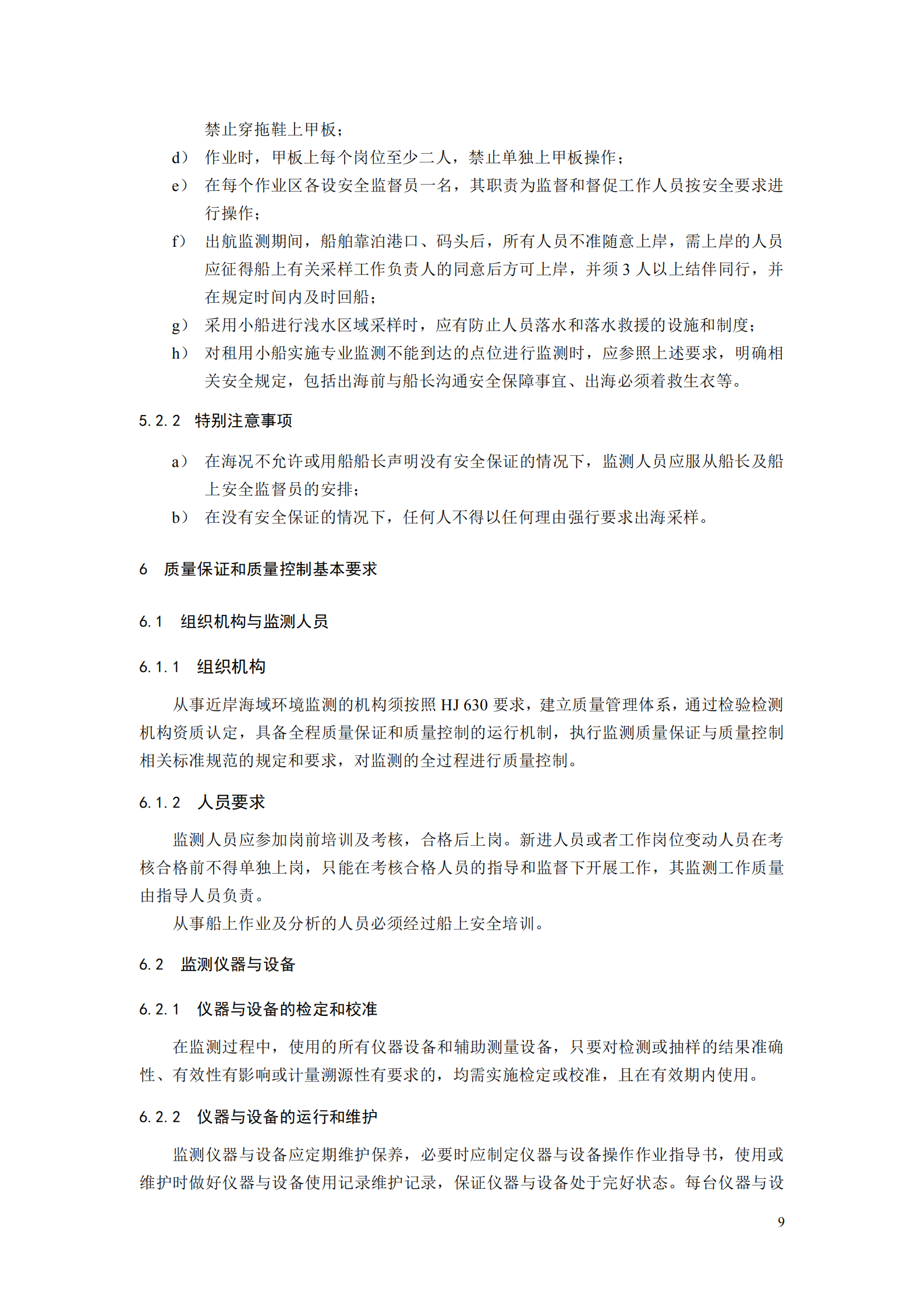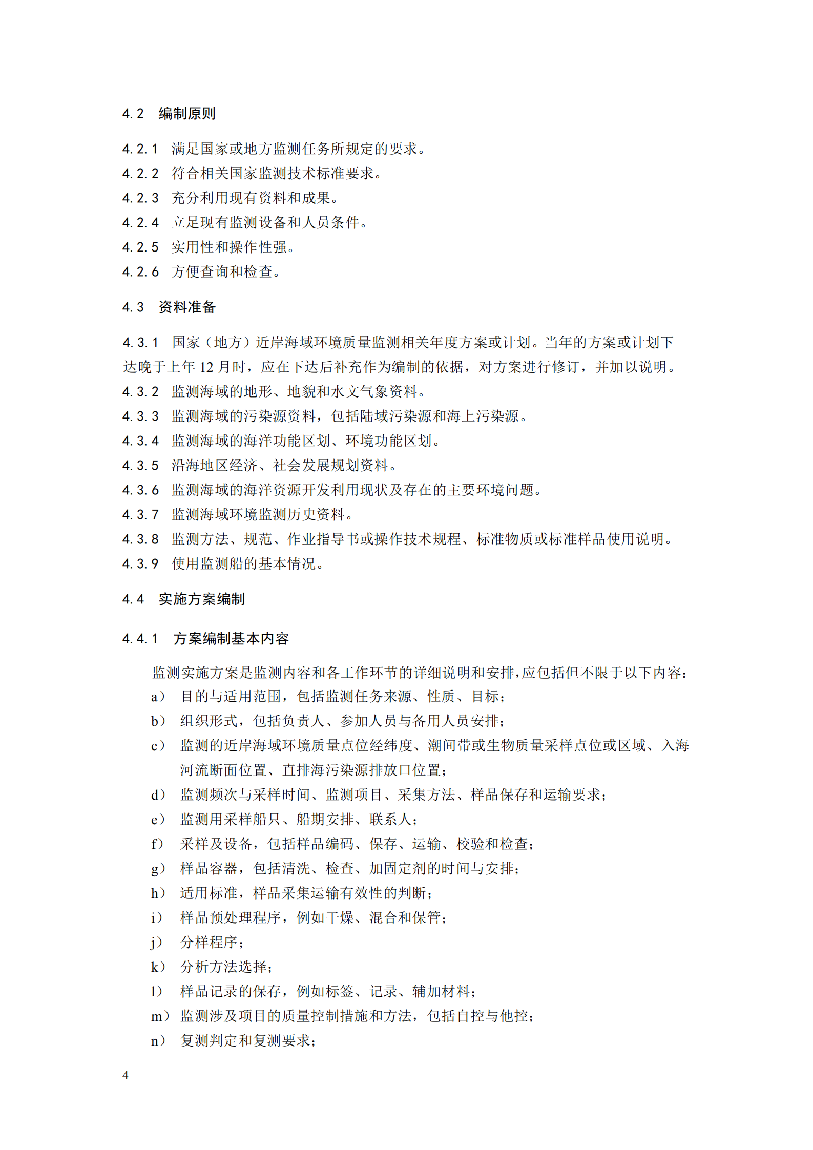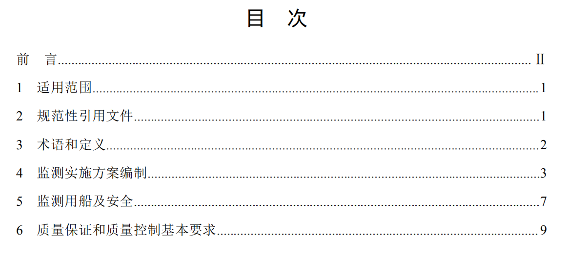 本標(biāo)準(zhǔn)作為修訂后標(biāo)準(zhǔn)的第一部分,針對監(jiān)測實施方案編制、監(jiān)測用船及安全和質(zhì)量保證和質(zhì)量控制基本要求,主要修訂以下幾方面內(nèi)容: