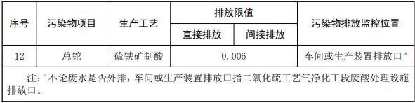 二、在“表 2 新建企業(yè)水污染物排放限值”“表 3 水污染物特別排放限值”中,增加總鉈排放限值要求(單位為 mg/L):