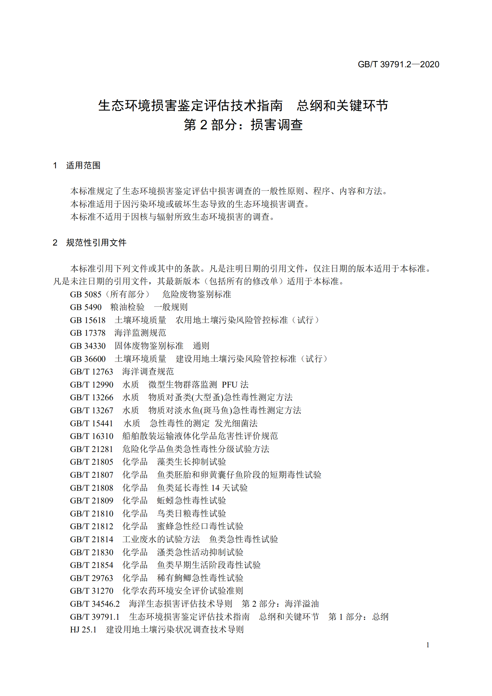 二、《生態(tài)環(huán)境損害鑒定評估技術(shù)指南 總綱和關(guān)鍵環(huán)節(jié) 第2部分:損害調(diào)查》(GB/T 39791.2-2020)