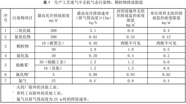 5.2.1 生產(chǎn)工藝廢氣中無(wú)機(jī)氣態(tài)污染物、顆粒物按表1的規(guī)定執(zhí)行。