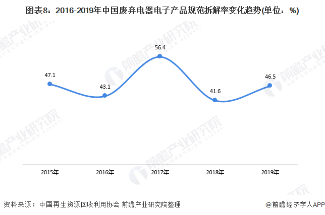 同時(shí),從部分細(xì)分市場的利用情況來看,在廢金屬市場中,再生銅鋁鉛鋅產(chǎn)量不斷增長,2020年約為1450萬噸;在廢棄電器電子市場,規(guī)范地拆解流程是其得以有效處置加工的前提,但目前的規(guī)范拆解率還有待提升;