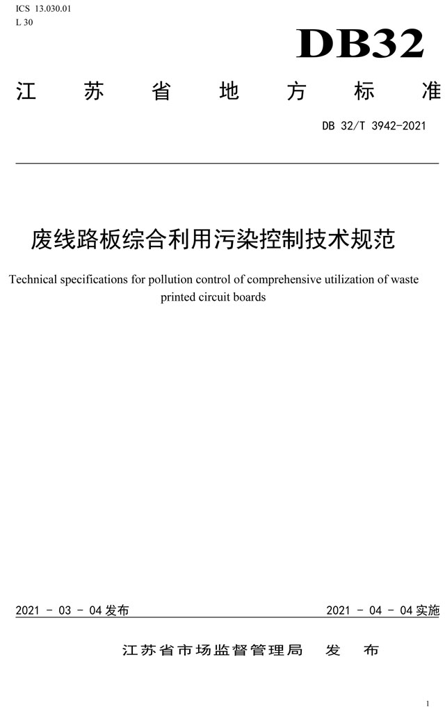 廢線路板綜合利用污染控制技術(shù)規(guī)范