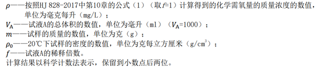 試樣中化學(xué)需氧量(CODCr)以質(zhì)量濃度ρ1計(jì),單位以毫克每升(mg/L)表示,按式(1)計(jì)算: