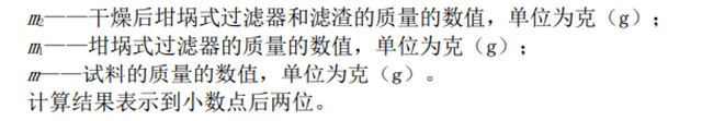 m2——干燥后坩堝式過(guò)濾器和濾渣的質(zhì)量的數(shù)值,單位為克(g);
