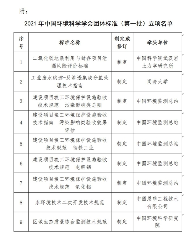 附件:2021年中國環(huán)境科學(xué)學(xué)會團(tuán)體標(biāo)準(zhǔn)(第二批)立項(xiàng)名單