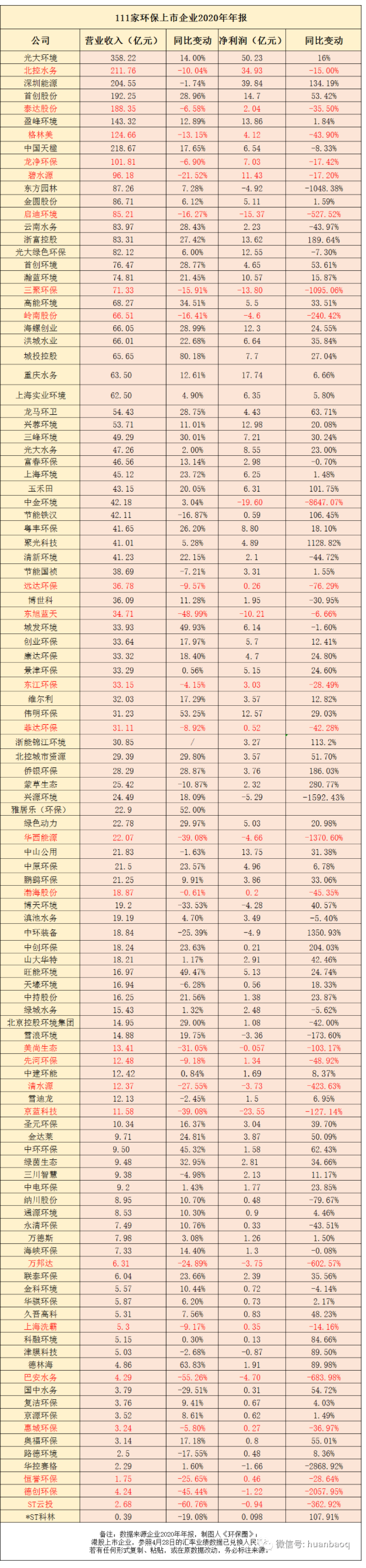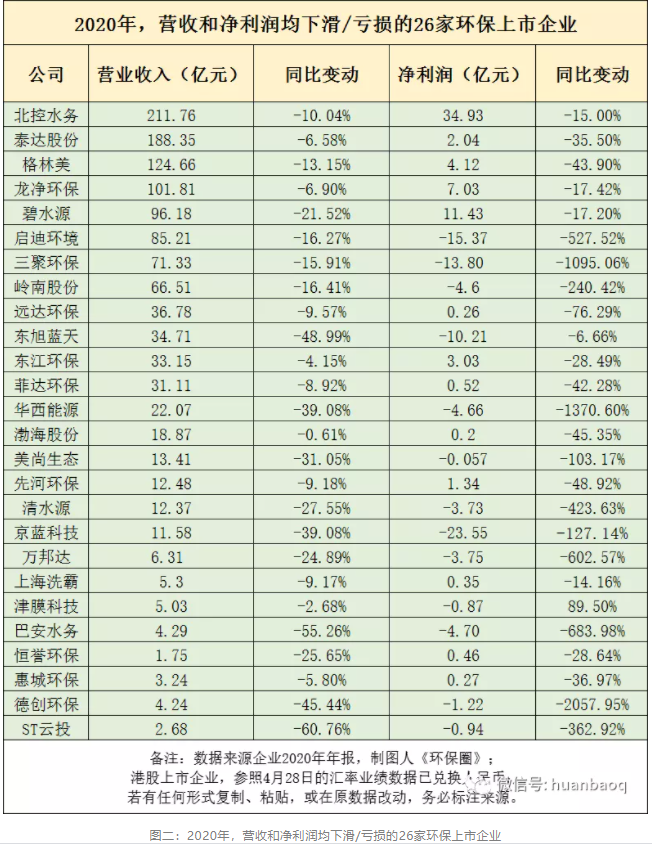 111家上市環(huán)企2020年報(bào):北控/啟迪/碧水源營(yíng)收凈利“雙降”