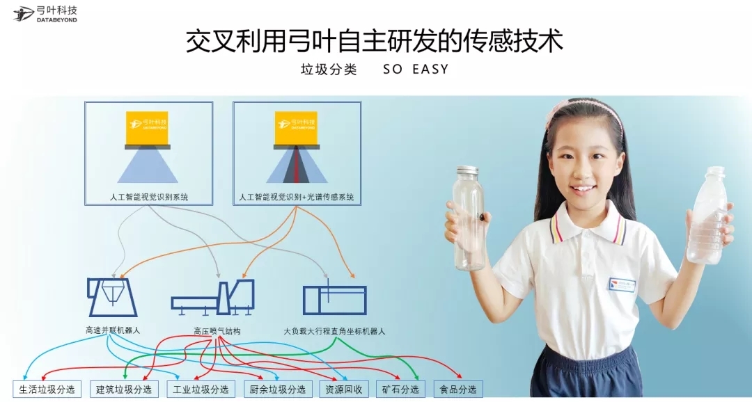 編輯從采訪中了解到,在中國(guó)政府尚未開(kāi)展垃圾分類工作之前,莫卓亞便帶領(lǐng)一支由香港科大、西安交通大學(xué)、中國(guó)人民大學(xué)、哈爾濱工業(yè)大學(xué)的博士、碩士共同組成的研發(fā)團(tuán)隊(duì),深入國(guó)內(nèi)數(shù)十個(gè)固廢處理廠,通過(guò)近三年時(shí)間,完成大數(shù)據(jù)采集、標(biāo)注,構(gòu)建了第一個(gè)固廢大數(shù)據(jù)庫(kù)。有了龐大的固廢大數(shù)據(jù)庫(kù),再結(jié)合團(tuán)隊(duì)自主研發(fā)的弓葉云平臺(tái)、Multi-Sensor融合技術(shù)、機(jī)器人本體設(shè)計(jì)和驅(qū)控一體技術(shù)、以及Ai識(shí)別技術(shù),弓葉科技推出了第一臺(tái)人工智能垃圾分揀機(jī)器人PiCKiNG Ai®。緊接著,弓葉科技推出了第一臺(tái)基于人工智能的高速噴氣式光選機(jī)FASToAi™,高速皮帶機(jī)最高時(shí)速可達(dá)6.5m/s,最大處理量可達(dá)50噸/小時(shí)。