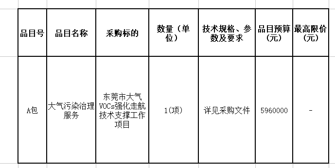 東莞市大氣VOCs強(qiáng)化走航技術(shù)支撐工作項(xiàng)目招標(biāo)公告