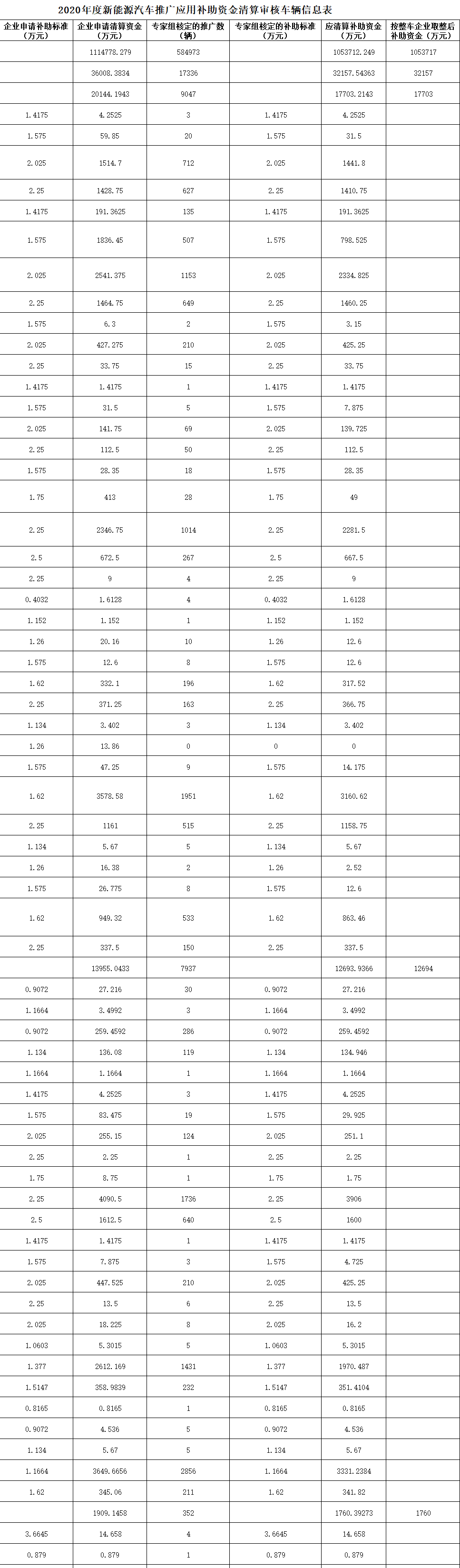 關(guān)于2016-2020年度新能源汽車推廣應(yīng)用補(bǔ)助資金清算審核初審情況的公示