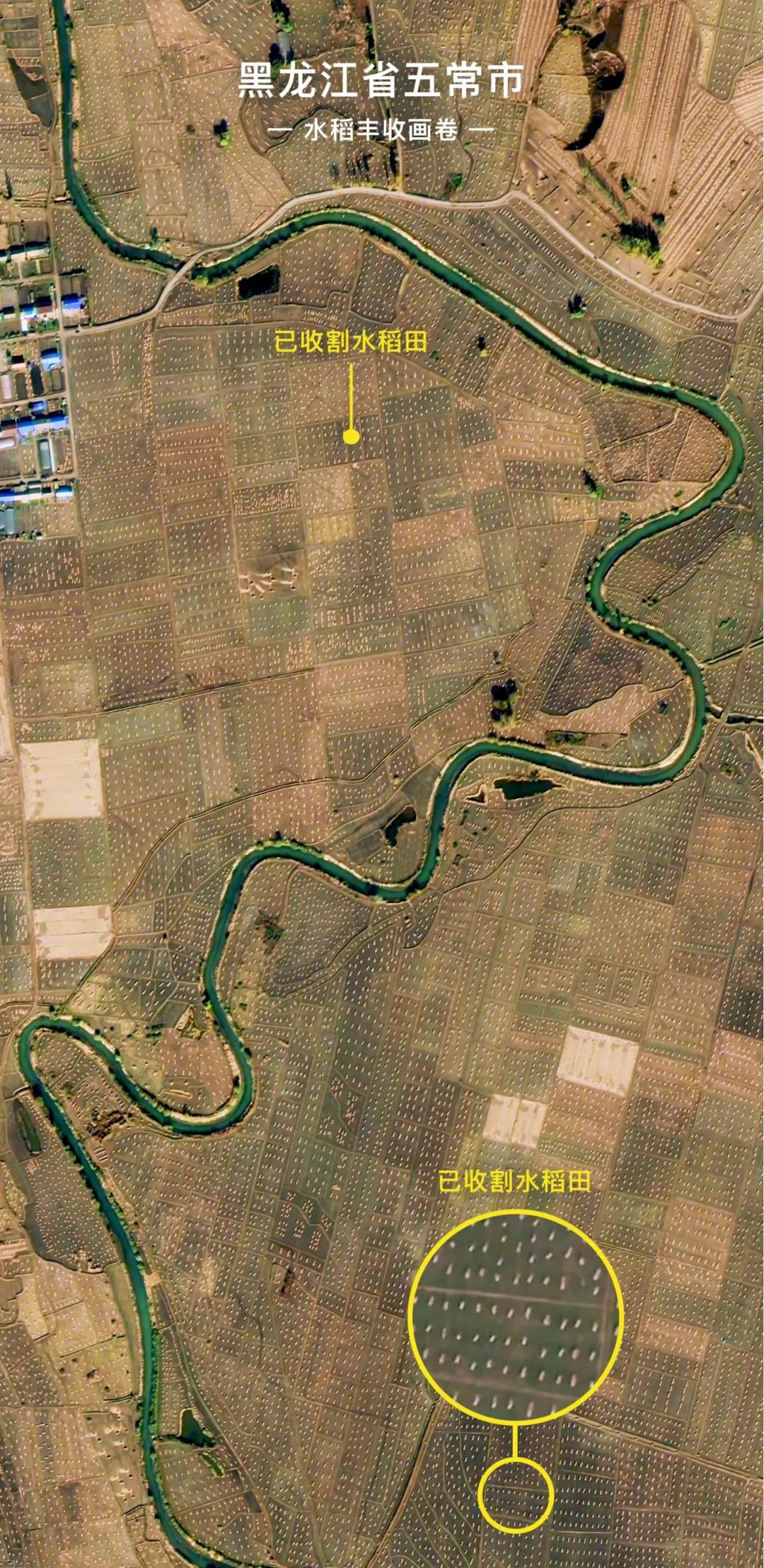 位于拉林河右側(cè)區(qū)域的五常市,已經(jīng)完成了大面積的水稻收割工作。吉林一號(hào)衛(wèi)星“捕捉”到了這個(gè)優(yōu)質(zhì)稻米產(chǎn)區(qū)的秋收盛況。