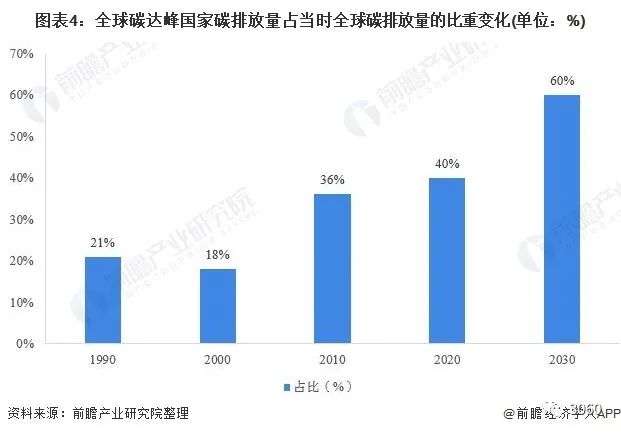 目前,全球已經(jīng)有54個(gè)國(guó)家的碳排放實(shí)現(xiàn)達(dá)峰,在已經(jīng)碳達(dá)峰的這些國(guó)家占當(dāng)時(shí)全球碳排放量的比例分別為21%、18%、36%和40%。到2030年,屆時(shí)全球?qū)⒂?8個(gè)國(guó)家實(shí)現(xiàn)碳排放達(dá)峰,占全球碳排放量的60%。
