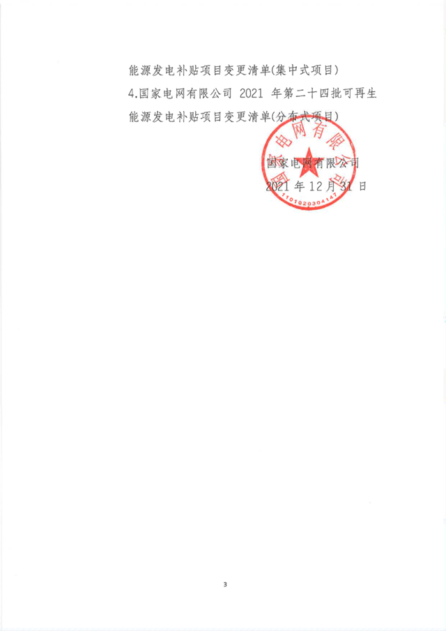 關(guān)于公布2021年第二十四批可再生能源發(fā)電補(bǔ)貼項(xiàng)目清單的公告