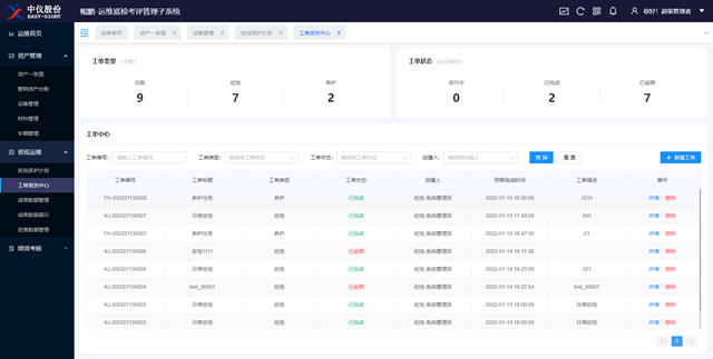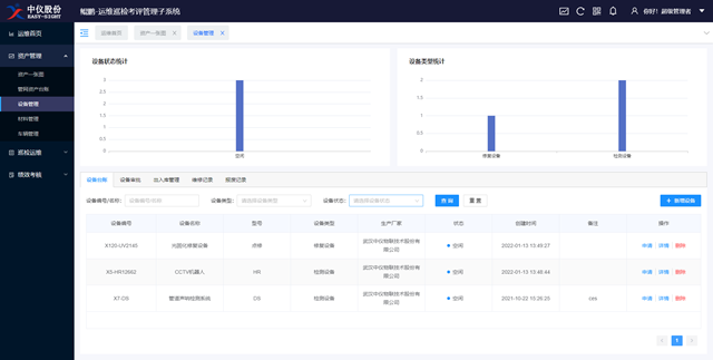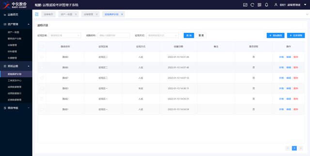 資產(chǎn)管理:加入設(shè)備、材料、車輛等資產(chǎn)管理臺賬,簡化設(shè)備申請、維修等使用流程,全面管控日常巡檢工作所需資產(chǎn)。