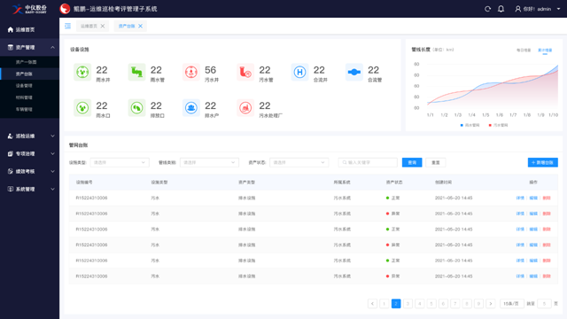 我們借助《鯤鵬-管網(wǎng)運維巡檢考評管理子系統(tǒng)》,運用現(xiàn)代化的手段,做到管網(wǎng)數(shù)據(jù)的賬冊化管理、巡視任務(wù)周期性分配、巡視成果及時上報、巡視團隊科學(xué)管理、運維成果績效考核。以日常巡檢養(yǎng)護為核心,以提質(zhì)增效為戰(zhàn)略目標(biāo),實現(xiàn)排水運維工作的數(shù)字化、信息化、全面化、實時化,保障排水系統(tǒng)高質(zhì)量發(fā)展,構(gòu)建運維建設(shè)新體系,引領(lǐng)高效運維管理新時代。