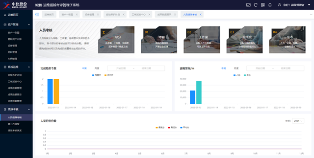 績效考核:依據(jù)考核人員考勤、工作量以及完成情況等實現(xiàn)人員的績效考核;依據(jù)時間跨度、隱患類型、隱患區(qū)域來進行抽樣檢查,考察整個運維效果。