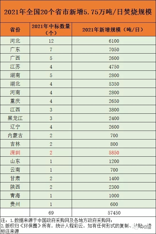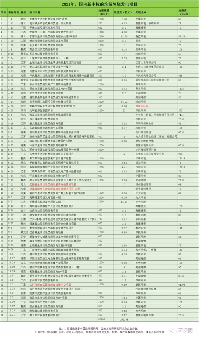 本文將從日處理規(guī)模、總投資、項目分布的省份、中標(biāo)企業(yè)等幾個角度,對2021年國內(nèi)新中標(biāo)的垃圾焚燒項目做出全面細(xì)致的梳理,并試著從具體項目及企業(yè)動態(tài)中總結(jié)出行業(yè)的幾大變化趨勢,僅供參考。