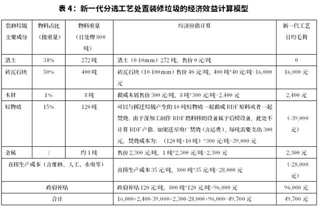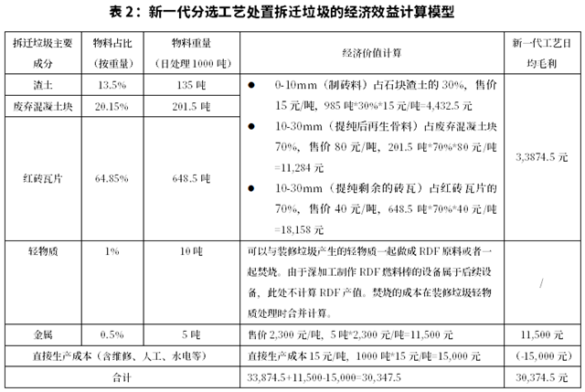 1.2采用新一代分選工藝處置1000噸拆遷垃圾所產(chǎn)生的日均經(jīng)濟(jì)效益