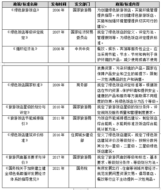 表2:有關(guān)酒店住宿行業(yè)綠色低碳發(fā)展的部分政策