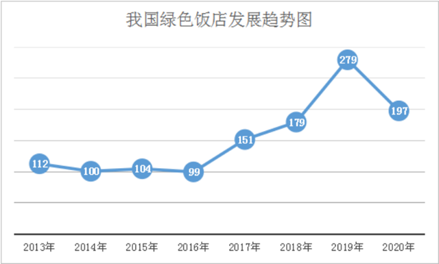 酒店住宿行業(yè)的碳排放可以分成直接碳排放和間接碳排放,直接碳排放主要包括酒店直接控制或擁有等化石燃料燃燒所產(chǎn)生的碳排放;間接碳排放主要包括酒店的建設(shè)、運營、銷售、管理等活動帶來的電力消耗而產(chǎn)生的排放。隨著社會環(huán)境保護、減少碳排放意識的增強,綠色低碳轉(zhuǎn)型成為酒店住宿行業(yè)的必然發(fā)展趨勢。在此背景下綠色酒店(Green Hotel)的理念應(yīng)運而生,根據(jù)《綠色飯店國家標(biāo)準(zhǔn)》的定義,綠色酒店(或譯為綠色飯店)是指在規(guī)劃、建設(shè)和經(jīng)營過程中,堅持以節(jié)約資源、保護環(huán)境、安全健康為理念,以科學(xué)的設(shè)計和有效的管理、技術(shù)措施為手段,以資源效率最大化、環(huán)境影響最小化為目標(biāo),為消費者提供安全、健康服務(wù)的飯店。綠色酒店理念的產(chǎn)生也推動了我國綠色酒店數(shù)量的逐步增加,如圖2所示2013年-2020年我國綠色飯店新增評定數(shù)量呈現(xiàn)大幅增長。綠色酒店建設(shè)目前也已成為酒店行業(yè)低碳轉(zhuǎn)型的關(guān)鍵方向,也是減少行業(yè)碳排放,實現(xiàn)“30·60”目標(biāo)不可或缺的一步。