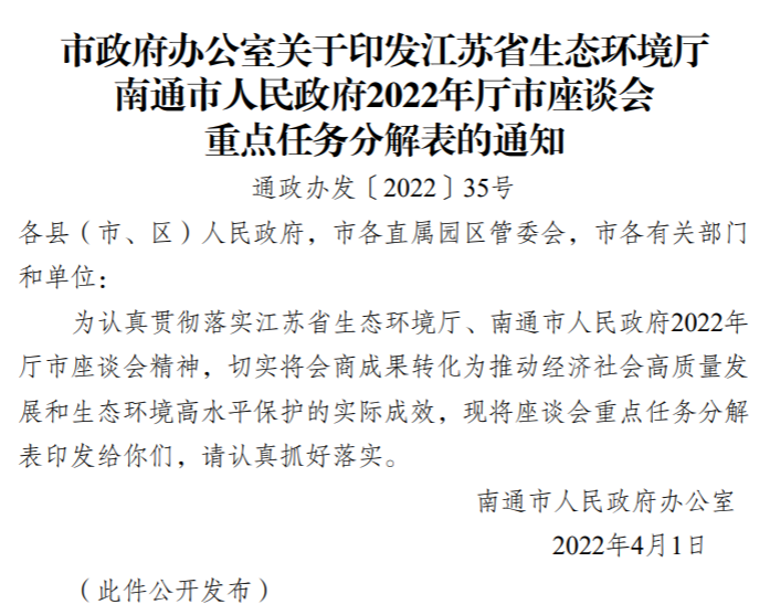 《通知》中具體將南通市2022年生態(tài)環(huán)境保護(hù)工作分解為以下12項(xiàng)內(nèi)容: