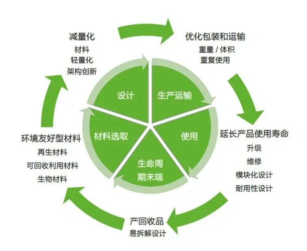通過對設計結(jié)構的改進,輕量化設計,材料循環(huán)回收利用等,從而減少自然資源的使用,可從生產(chǎn)加工、消費使用、用后遺棄等方面全面減少對生態(tài)的破壞。